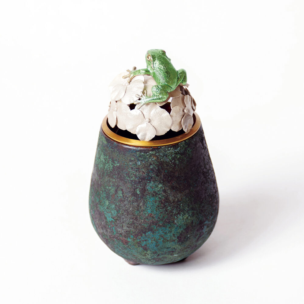 梅雨晴れ -蛙と紫陽花図三足香炉