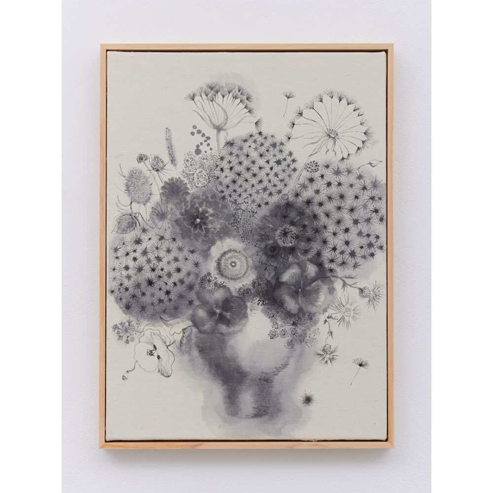 時間を消していくように余白を描き、花が開く音や花びらが落ちる音が聞こえるように表現し、言葉を綴るように作り上げられた作品は、まるで自然を慈しむ一片の詩のようです。
